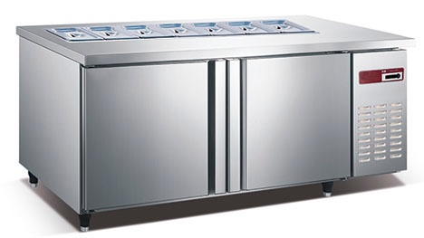 1. Core structure: The upper part is a stainless steel countertop with square holes or holes of different sizes; The lower part is a refrigeration cabinet cooled by a compressor.