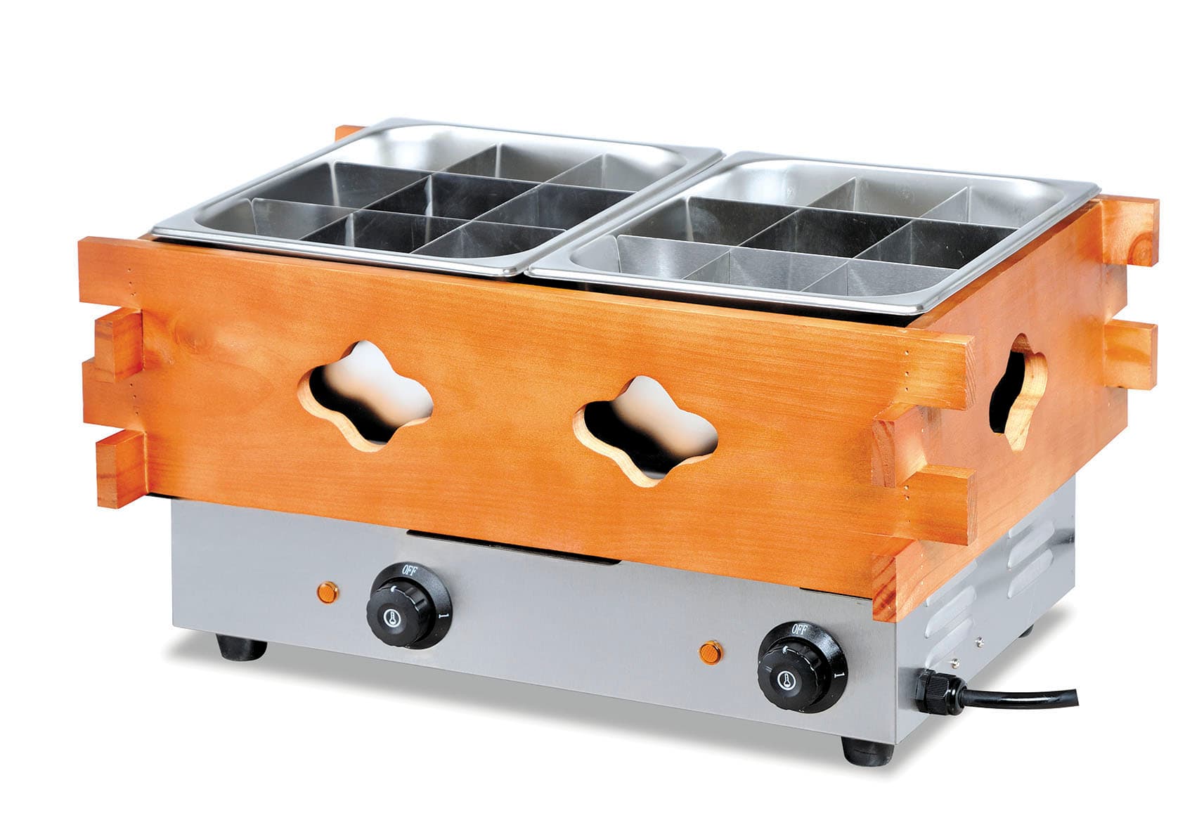2)The wood-grain shell: It adopts a design of "stainless steel inner pot + wood-grain veneered shell", with a retro and beautiful appearance, suitable for the tone of Japanese oden, and can also play a certain role in heat insulation.