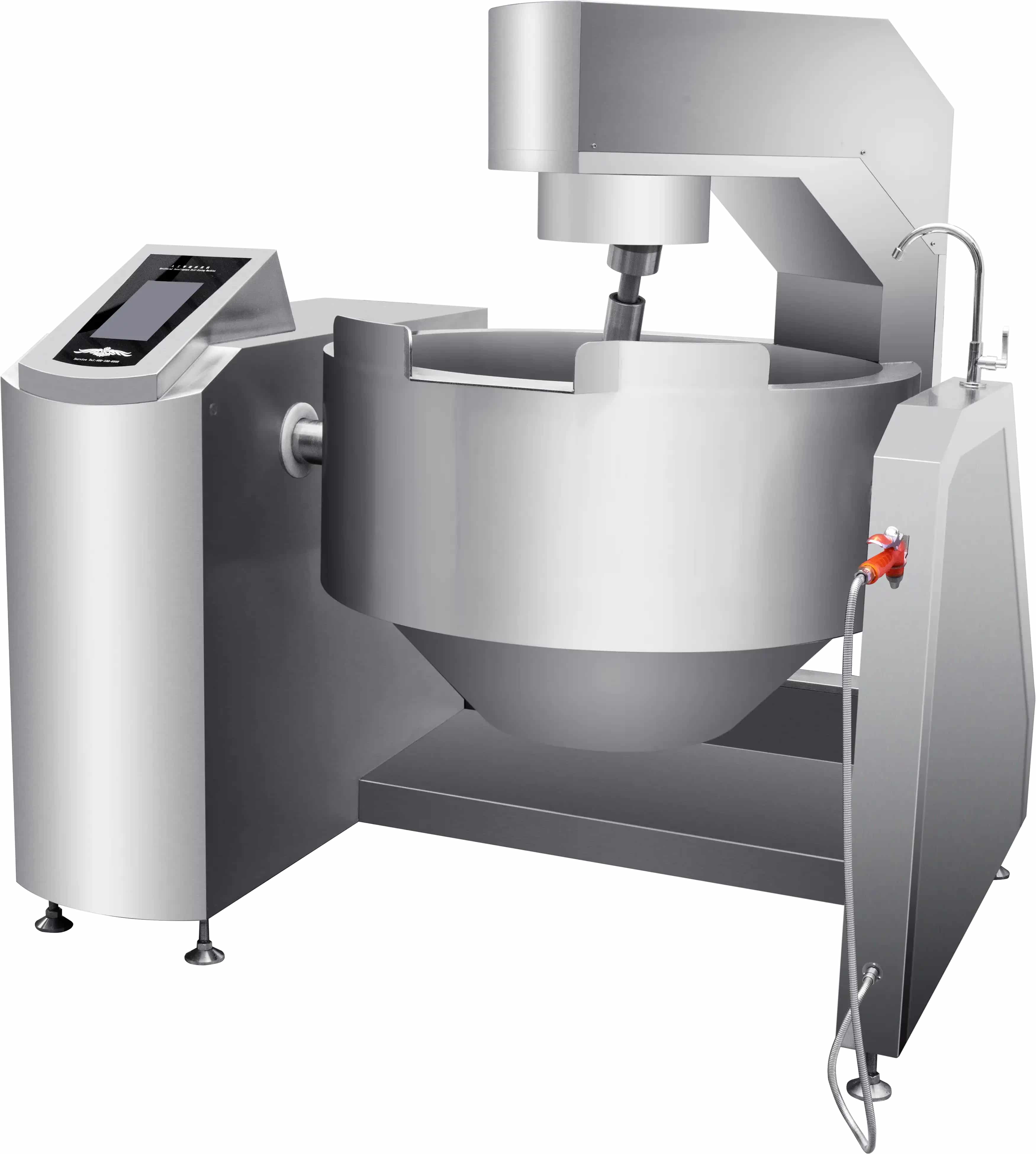 All 304 food-grade stainless steel pot; The self-rotation and revolution combined structure can scrape the bottom and edge, stir evenly without dead corners, and prevent the pan from sticking or burning. Intelligent timed temperature control assistance, automatic pot flipping and material pouring, energy-saving, efficient and fast.